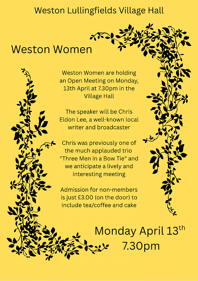 Weston Women are holding an Open Meeting on Monday, 13th April at 7.30pm